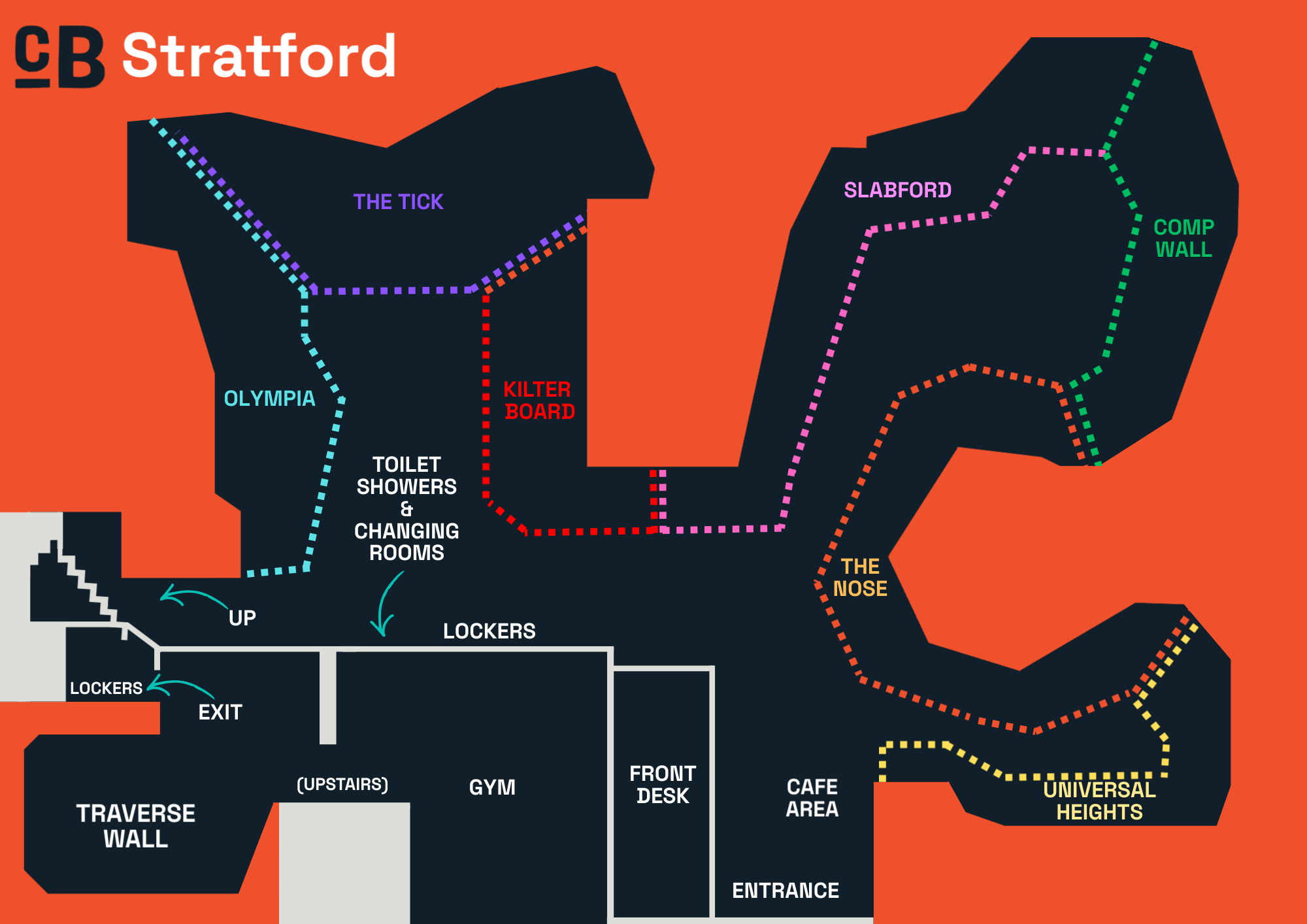 With every circuit getting re-set at least every 4-6 weeks, there’s always enough time to work your project before a fresh new set of problems get put up. Refer to the map below for area names.